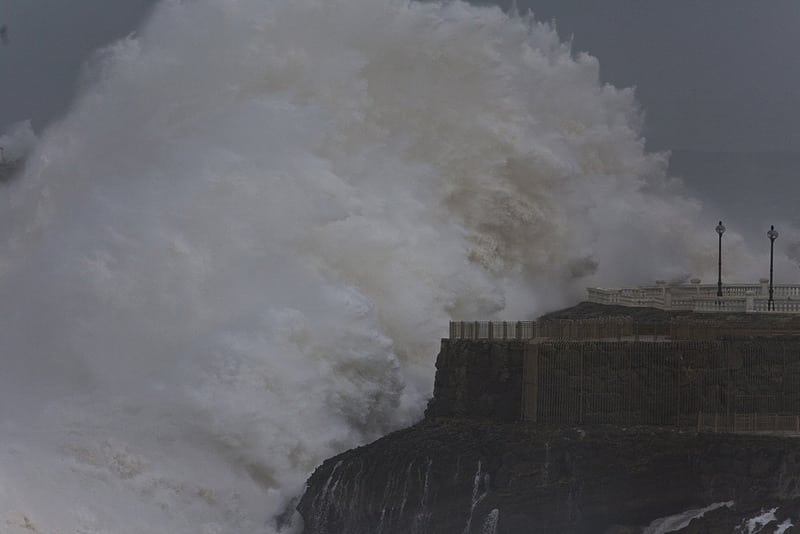 Aquí os dejo algunas fotos pertenecientes al fotógrafo Antonio Cerezo, que amablemente nos ha cedido para este post. Fueron realizadas en Santander el mismo día de la última ciclogénesis explosiva, y que demuestran la braveza que tuvo el temporal en la capital Cántabra.